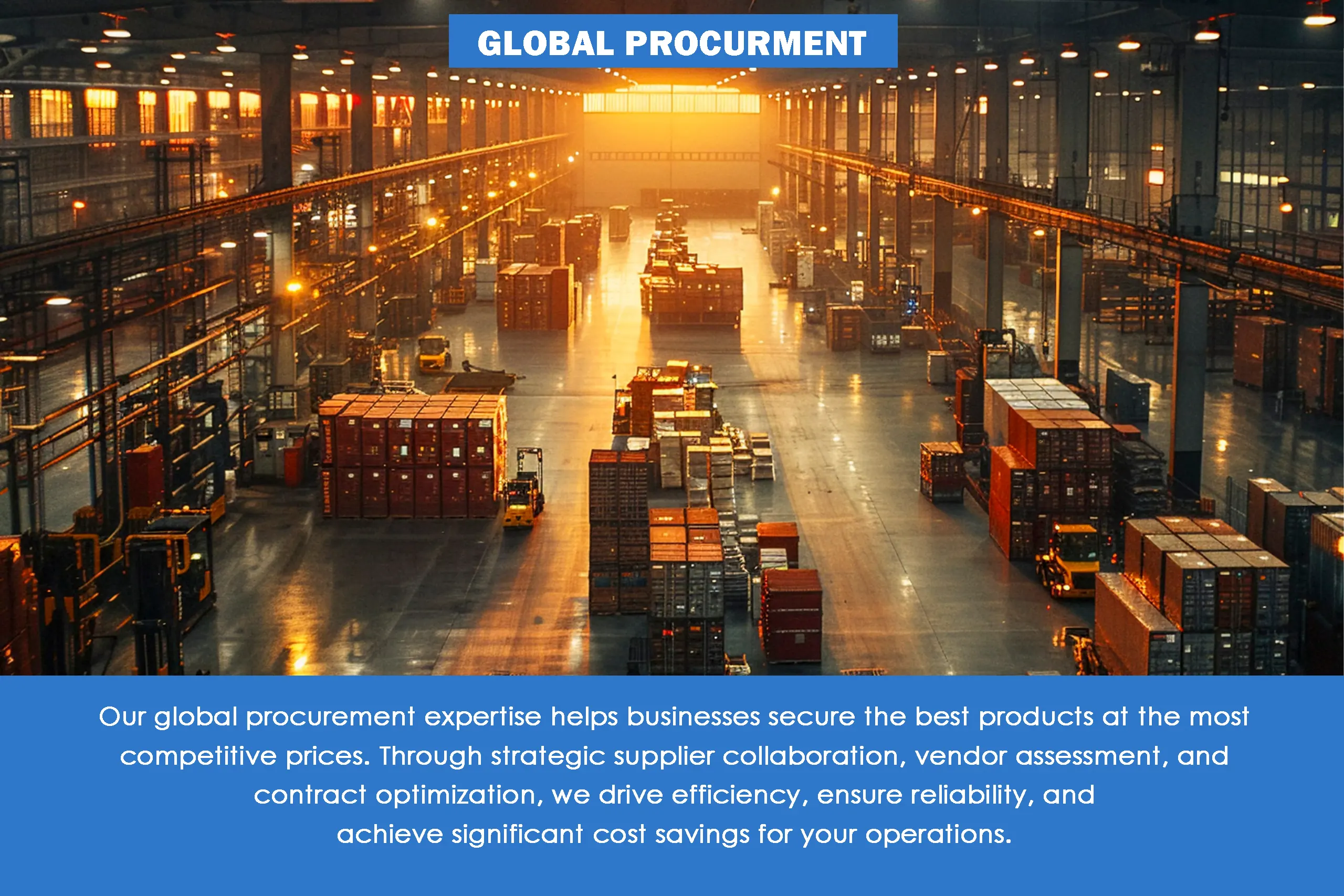 Connecting you with trusted suppliers worldwide. We identify reliable vendors, negotiate competitive terms, and ensure quality at every stage—strengthening supplier networks and driving efficiency.
